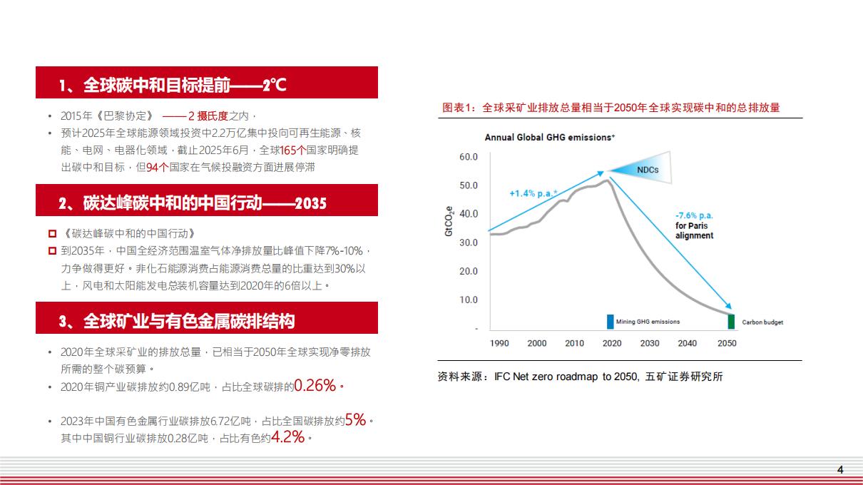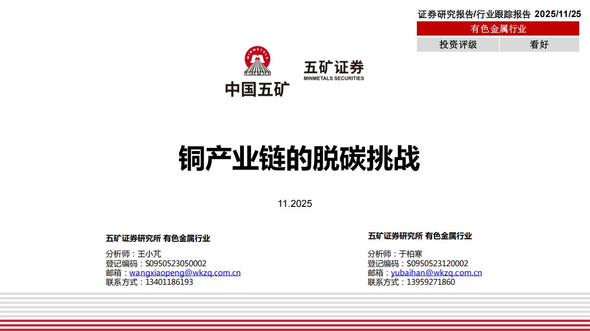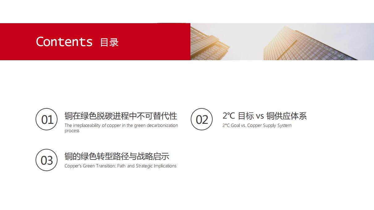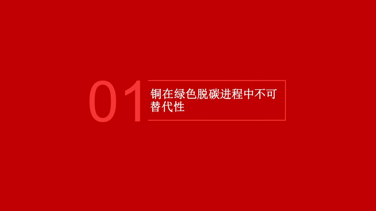 □电气化进程几乎为绿色脱碳的主战场:全球碳排放的70%以上来源于能源系统,脱碳实质上是一个能源结构转型过程。要实现“全球温升不超过2℃”的目标,脱碳的四大核心领域包括:电力系统脱碳、交通运输电动化、工业制造减碳及建筑与终端能效等。其中,主要的代表技术包括光伏、风电、储能、电网数字化、电动汽车、充电设施等。而铜作为目前主要导电金属,其在绿色脱碳中扮演核心角色。