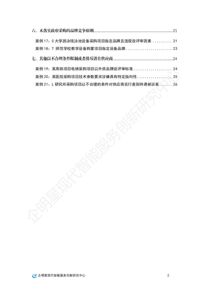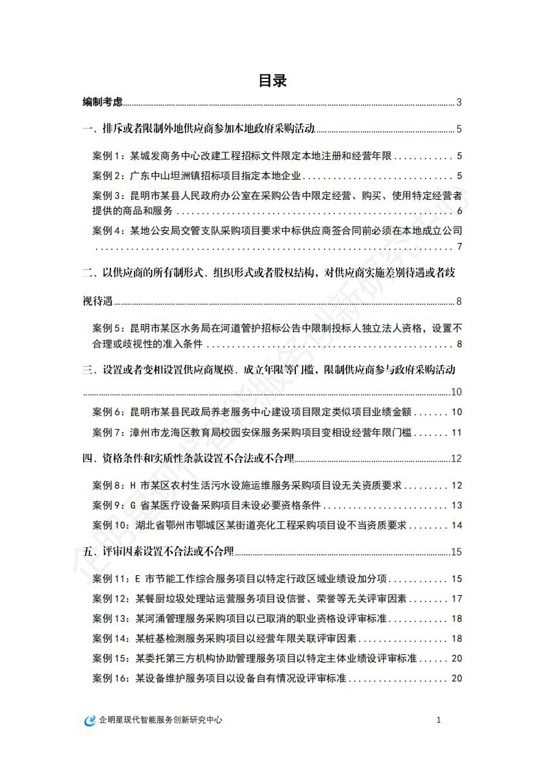 本汇编重点聚焦于政府采购项目招标投标文件的违规情形,从各级官方渠道搜集、整理了政府采购人在招标采购过程中,因采购文件存在违规限制或排斥潜在投标者问题的典型案例,共计21例,基本覆盖上述七类违规情形。以期为各级招投标监管部门理解审查标准、把握审查尺度提供实务参考。