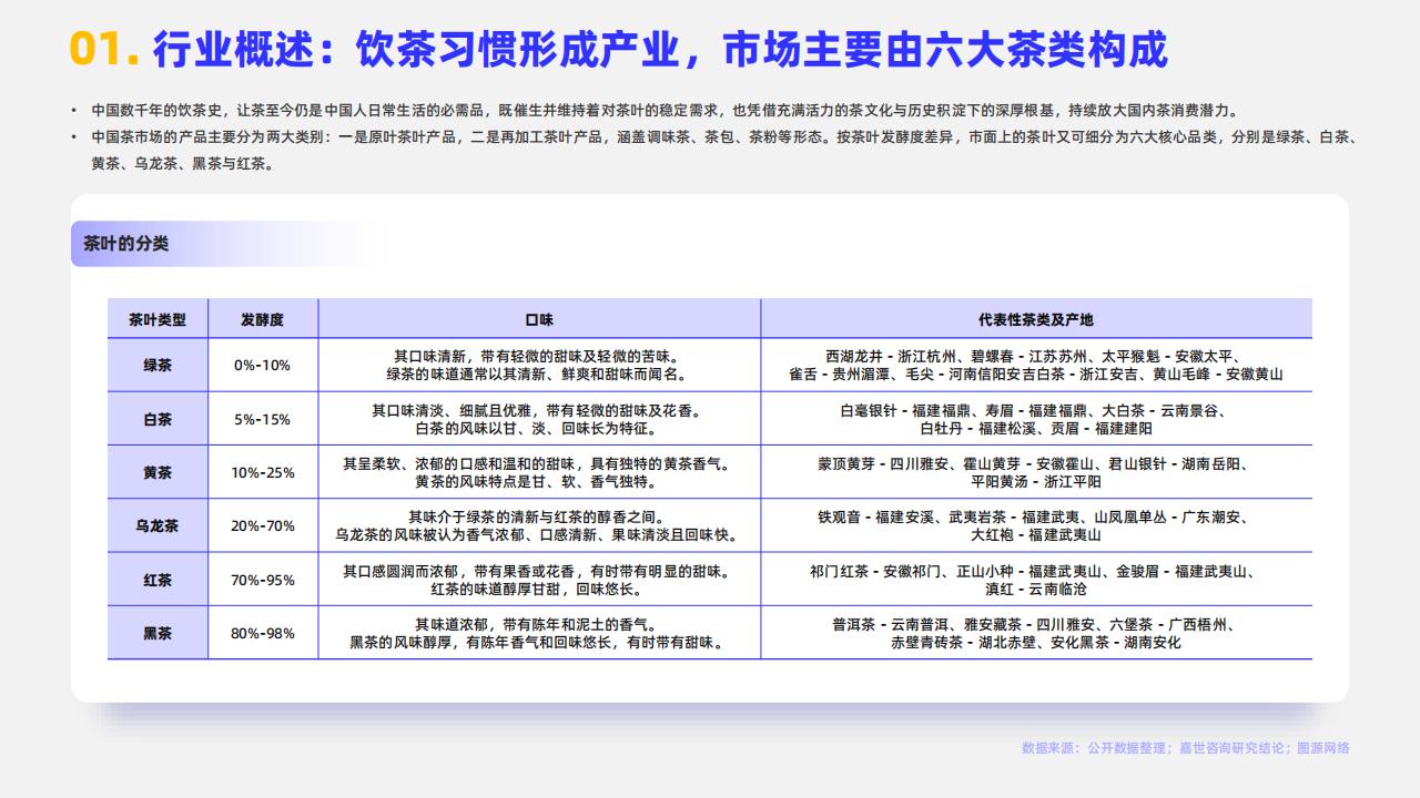 01.行业概述:饮茶习惯形成产业,市场主要由六大茶类构成