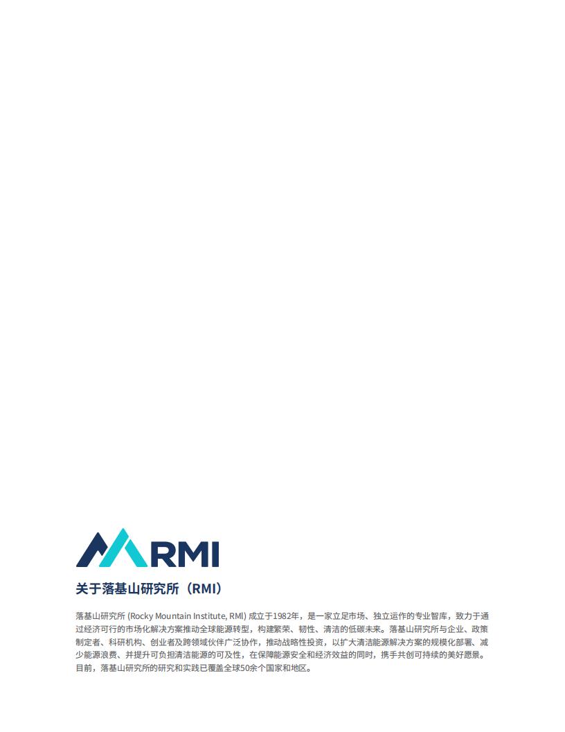 落基山研究所(Rocky MountainInstitute,RMI)成立于1982年,是一家立足市场、独立运作的专业智库,致力于通过经济可行的市场化解决方案推动全球能源转型,构建繁荣、韧性、清洁的低碳未来。落基山研究所与企业、政策制定者、科研机构、创业者及跨领域伙伴广泛协作,推动战略性投资,以扩大清洁能源解决方案的规模化部署、减少能源浪费、并提升可负担清洁能源的可及性,在保障能源安全和经济效益的同时,携手共创可持续的美好愿景。目前,落基山研究所的研究和实践已覆盖全球50余个国家和地区。