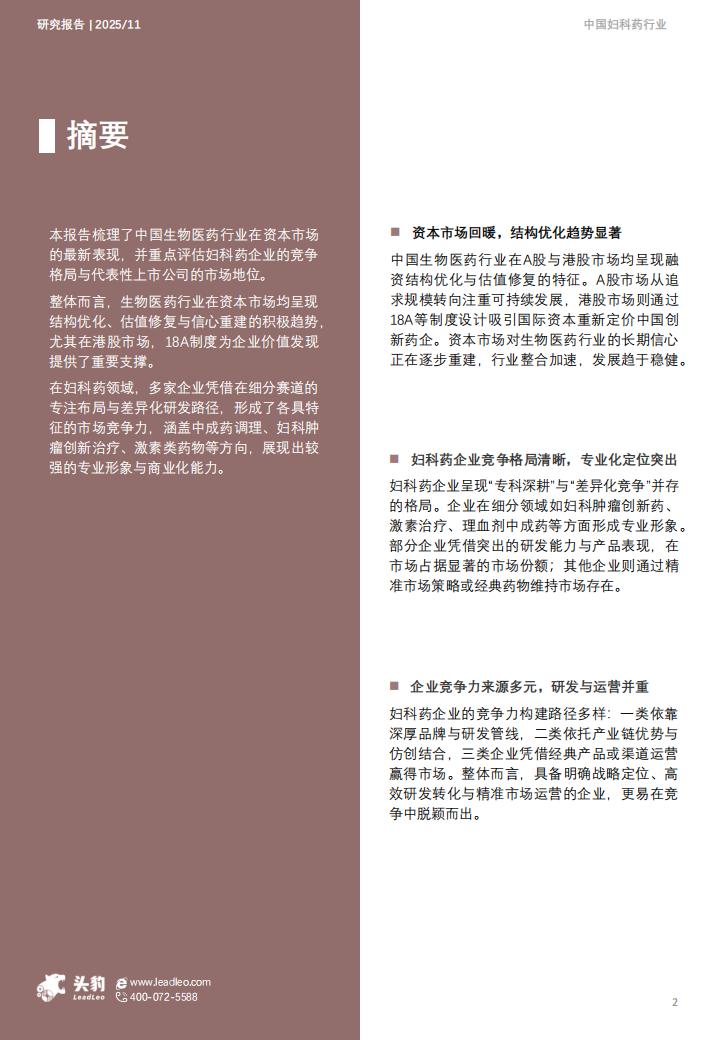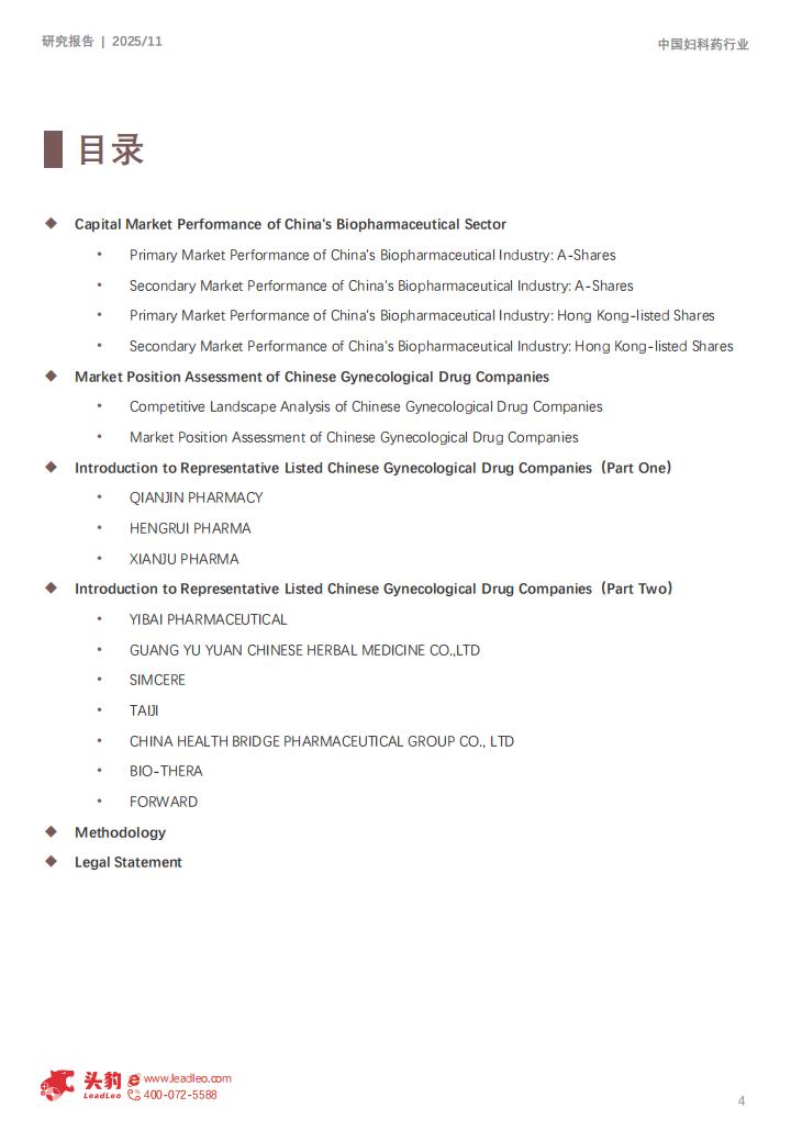 本报告梳理了中国生物医药行业在资本市场的最新表现,并重点评估妇科药企业的竞争格局与代表性上市公司的市场地位。