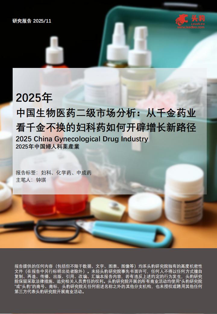 ■ 妇科药企业竞争格局清晰,专业化定位突出妇科药企业呈现“专科深耕”与“差异化竞争”并存的格局。企业在细分领域如妇科肿瘤创新药、激素治疗、理血剂中成药等方面形成专业形象。部分企业凭借突出的研发能力与产品表现,在市场占据显著的市场份额;其他企业则通过精准市场策略或经典药物维持市场存在。