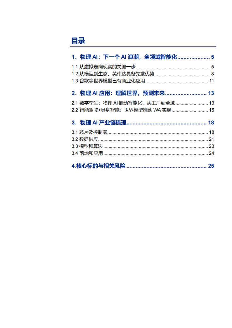 人工智能的下一个浪潮,将是能够理解并适应物理世界的物理AI(Physical Al)。AI正从主要处理数字和信息任务的工具,演进为能够在复杂、动态的物理环境中进行感知、推理、决策和行动的智能体。这一转变,标志着AI技术从虚拟世界全面迈向现实世界,其影响力将深远地涉及机器人、自动驾驶、工业制造等领域。