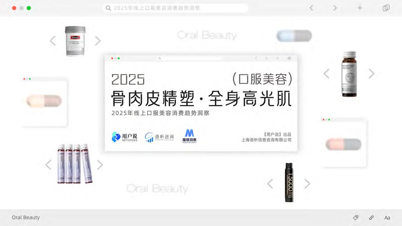 因此,社会化媒体端用户的口碑、舆情数据对品牌极其重要。在中国,目前尚未针对口服美容产业建立独立的监管规范与标准。现有的口服美容产品主要归属于两类食品管理框架:其一是含有功能性成分的普通食品;其二是特殊食品范畴下的保健食品。