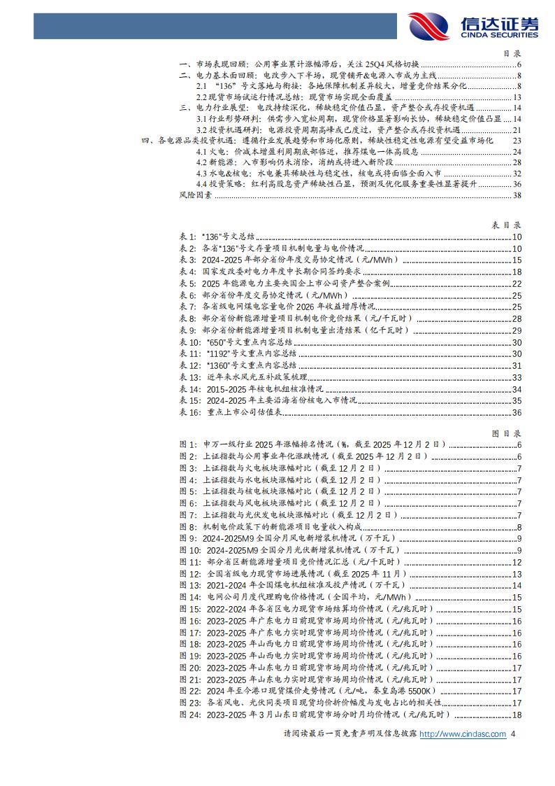 电力基本面回顾:电改步入下半场,现货铺开&电源入市成为主线。“136”号文落地与衔接:各地保障机制差异较大,增量竞价结果分化。“136”号文官宣中国新能源发电正式进入到全面入市阶段。由于存量项目和增量项目的“机制三要素”差别较大,导致25年上半年出现新能源项目“531”抢装热潮。存量项目方面,大部分地区做到了“136”号文中的“平稳过渡”要求,但对于纳入机制的电量体量,各地政策有所差别。增量项目方面,山东、云南等11省市区完成首次增量项目竞价。从竞价结果来看,上海、江西、云南、天津、新疆的结果更接近竞价上限;青海直接以上限成交;而甘肃则以下限成交。现货市场试运行情况总结:现货市场实现全面覆盖。“394”号文再度要求各省推进现货市场,并提出“鼓励先进,鞭策后进”的具体要求。截至2025年11月,我国省级电力现货市场已实现基本全覆盖,“394”号文的目标已经实现,现货市场有望迎来全面推广。