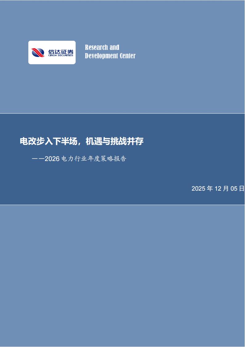 2026电力行业年度策略报告:电改步入下半场,机遇与挑战并存