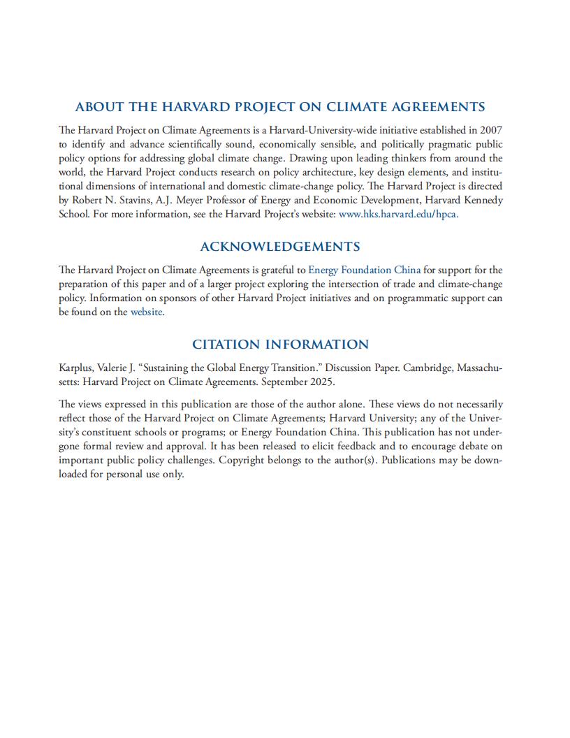 本文旨在结合主要参与方在气候雄心、技术成本以及宏观经济、贸易和国家安全优先事项等方面的持续变化,探讨在主要耗能活动中推进气候变化减缓的路径。第二部分将分析能源转型技术在电力、工业和交通这三个主要二氧化碳(CO₂)排放部门中日益分化的创新和部署模式。该部分将描述预计具有成本效益的减排策略,并审视这些策略与更广泛的部门及经济发展优先事项的契合度。第三部分将阐述不断变化的气候政策格局,并结合当前成本情况和采用的激励制度,探讨其中存在的差距。该部分将探讨企业和政府在弥合这些差距方面各自扮演的角色。第四部分将探讨一系列可能与转型相互影响的更广泛优先事项:贸易和产业政策、国家安全以及宏观经济稳定性。第五部分将提出若干机遇,旨在实现能源系统现代化,支持经济和安全目标,同时为提高未来气候政策的可行性、雄心和持久性做出贡献。