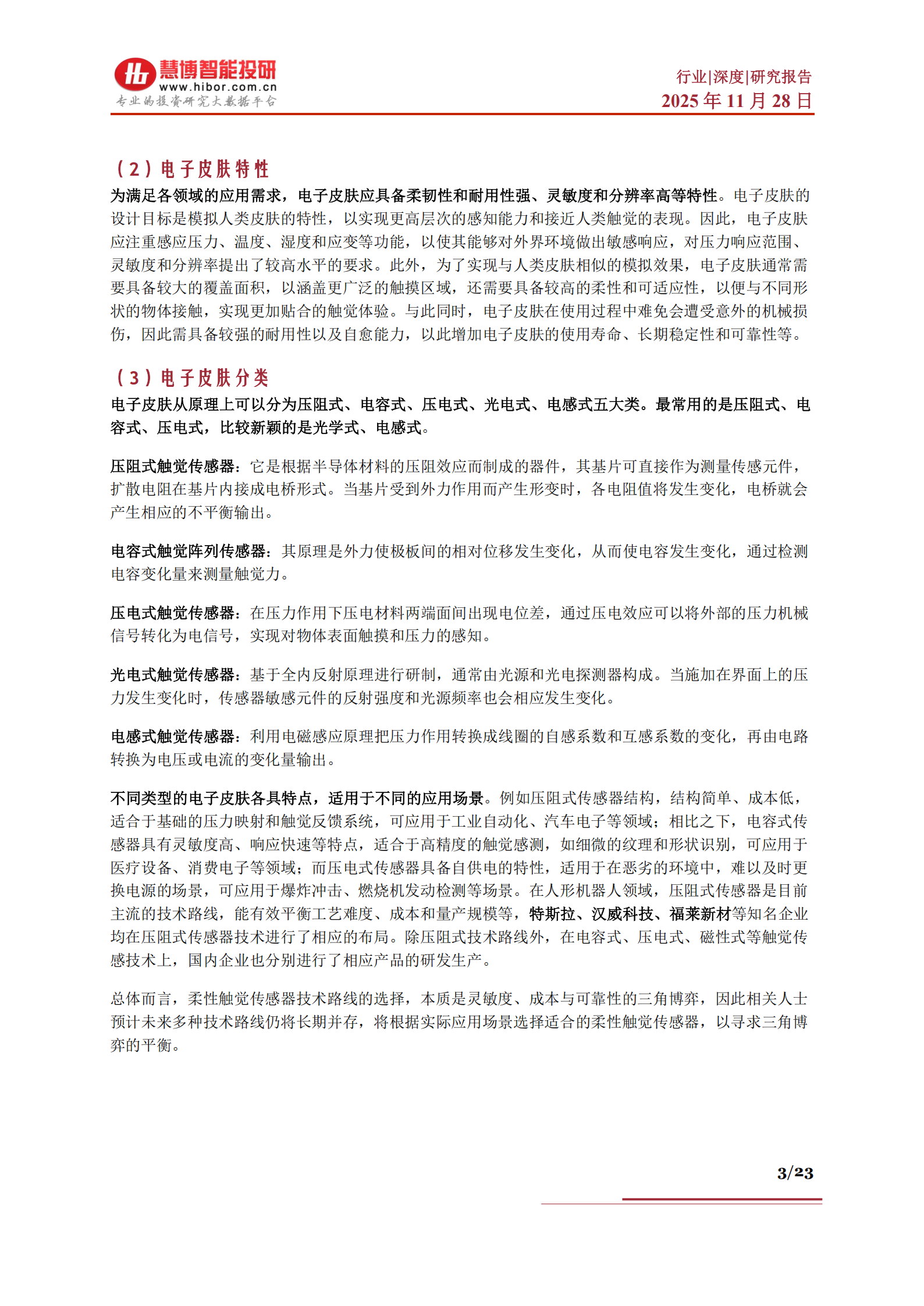 面对这片蓝海,全球企业加快布局。海外企业在高端市场占据优势,而国内企业如汉威科技、福莱新材等正加速技术研发和产业化进程。未来,随着材料科学与感知算法的持续突破,电子皮肤将向自修复、多功能集成等方向发展,为人形机器人在工业、医疗、服务等领域的广泛应用提供关键支撑。