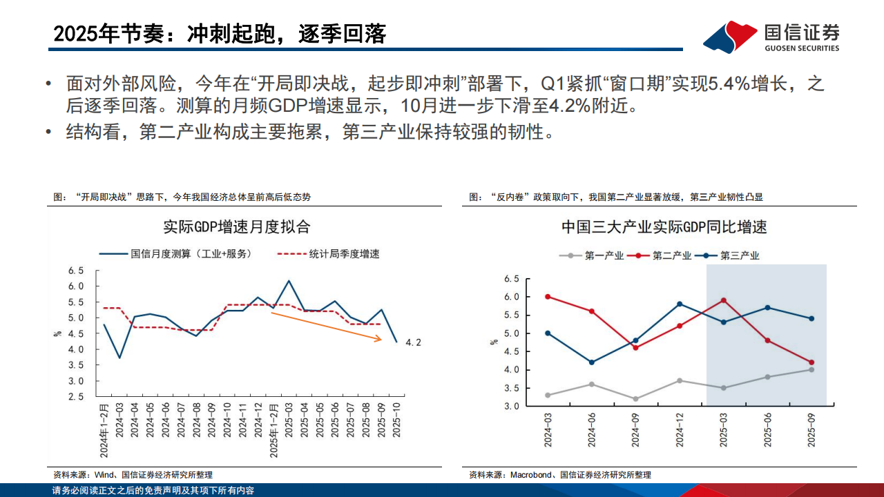 后逐季回落。测算的月频GDP增速显示,10月进一步下滑至4.2%附近。