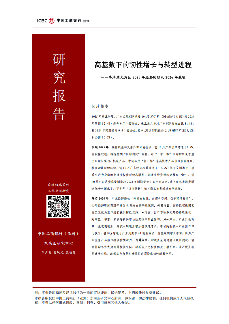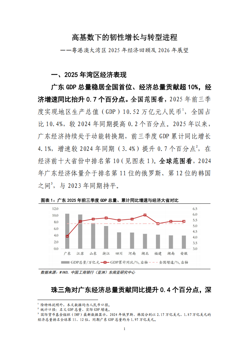 ——粤港澳大湾区2025年经济回顾及2026年展望