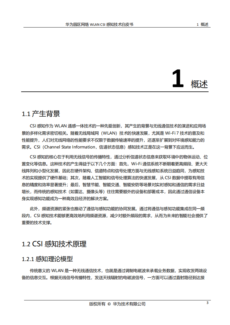 CSI感知的核心在于利用无线信号的传播特性,通过分析信道状态信息来获取环境中的物体运动、位置变化等信息。这种技术的产生得益于以下几个方面:首先,Wi-Fi通信系统不断朝着更高频段、更大天线阵列和小型化发展,因此在硬件架构、信道特点和信号处理方面与无线感知系统日益趋同,为感知技术的实现提供了硬件基础;其次,随着人工智能和信号处理算法的快速发展,从CSI数据中提取有用信息的精度和效率显著提升;最后,智慧节能、智能交通、智能安防等场景对实时感知和通信的需求日益增长,而传统的感知技术(如雷达、摄像头等)往往需要额外的设备和部署成本,因此通过通信设备本身实现感知功能成为一种高效且经济的解决方案。
