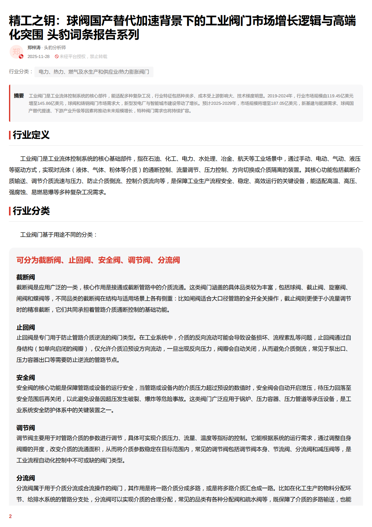 精工之钥:球阀国产替代加速背景下的工业阀门市场增长逻辑与高端化突围头豹词条报告系列