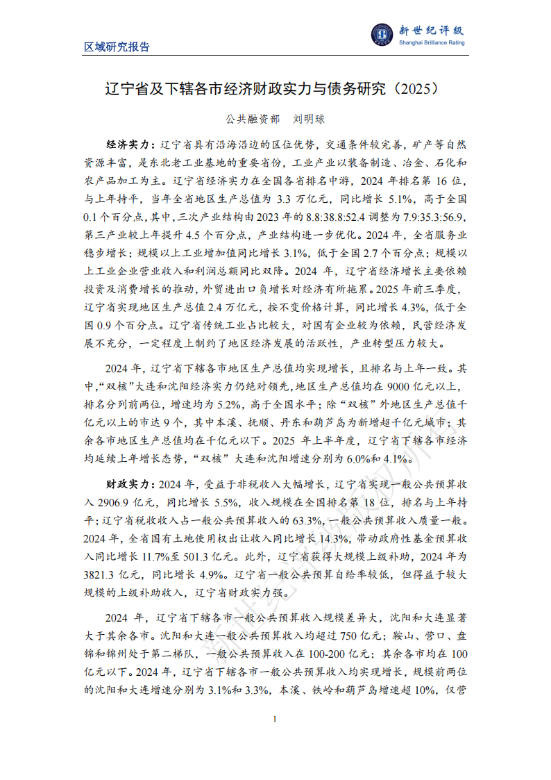 辽宁省及下辖各市经济财政实力与债务研究(2025)