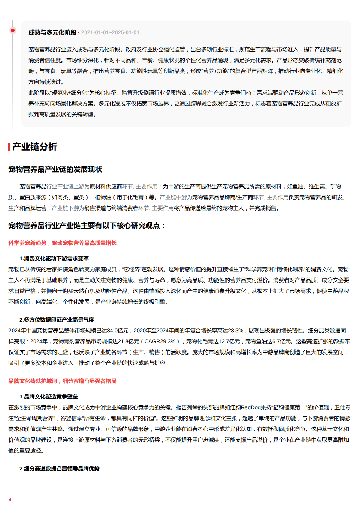 宠物营养品行业产业链主要有以下核心研究观点: