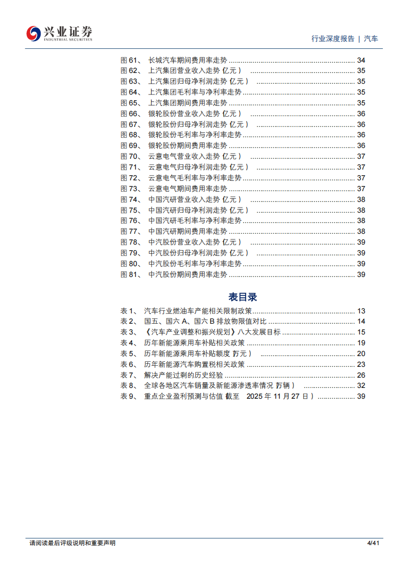 企业。具体包括:比亚迪(本地化产能陆续落地,海外销量高速增长)、长城汽车(新品周期强劲,新能源占比持续提升,海外市场快速拓展人、上汽集团(自主向上,合资企稳,新能源及智能化转型加速)、银轮股份(EGR业务受益于排放标准趋严)、云意电气(氮氧传感器受益于排放标准升级)、中国汽研(国七以及L2强检带动检测业务量价齐升)、中汽股份法规趋严助力试验需求提升)等。