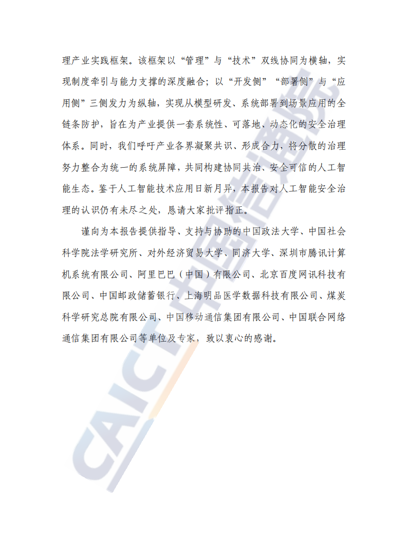 谨向为本报告提供指导、支持与协助的中国政法大学、中国社会科学院法学研究所、对外经济贸易大学、同济大学、深圳市腾讯计算机系统有限公司、阿里巴巴(中国)有限公司、北京百度网讯科技有限公司、中国邮政储蓄银行、上海明品医学数据科技有限公司、煤炭科学研究总院有限公司、中国移动通信集团有限公司、中国联合网络通信集团有限公司等单位及专家,致以衷心的感谢。