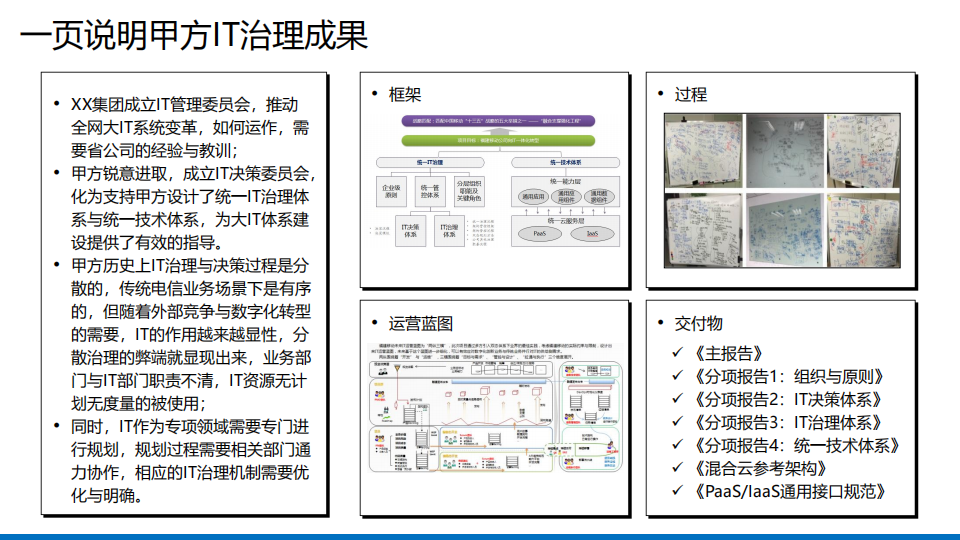 甲方锐意进取,成立IT决策委员会化为支持甲方设计了统一IT治理体系与统一技术体系,为大IT体系建设提供了有效的指导。