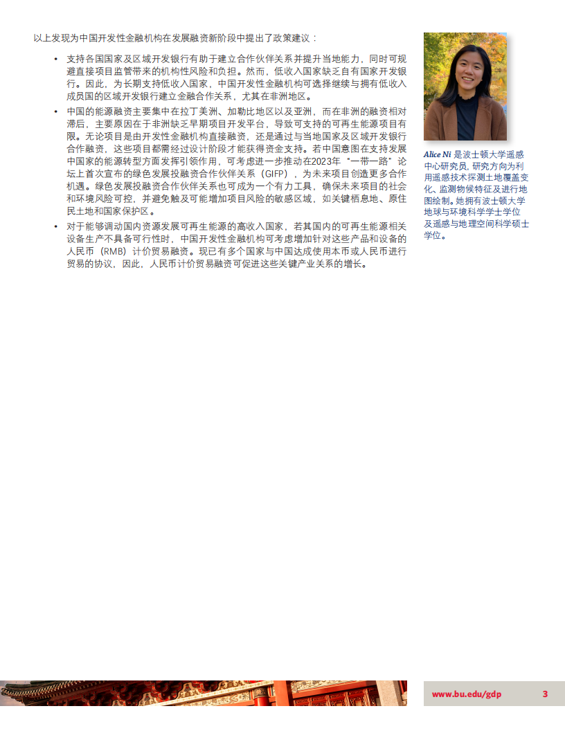 ·可再生能源贷款规模仍有限:然而,用于可再生能源项目的贷款并未出现增长。相比于化石燃料或大型水电项目,太阳能和风能等可再生能源项目通常规模较小,这对规模庞大、且地理距离较远的中国开发性金融机构带来了挑战。这可能表明,中国在可再生能源融资方面,更倾向于依托各国国家及区域开发银行,这类机构通常规模较小,且更靠近项目所在地。