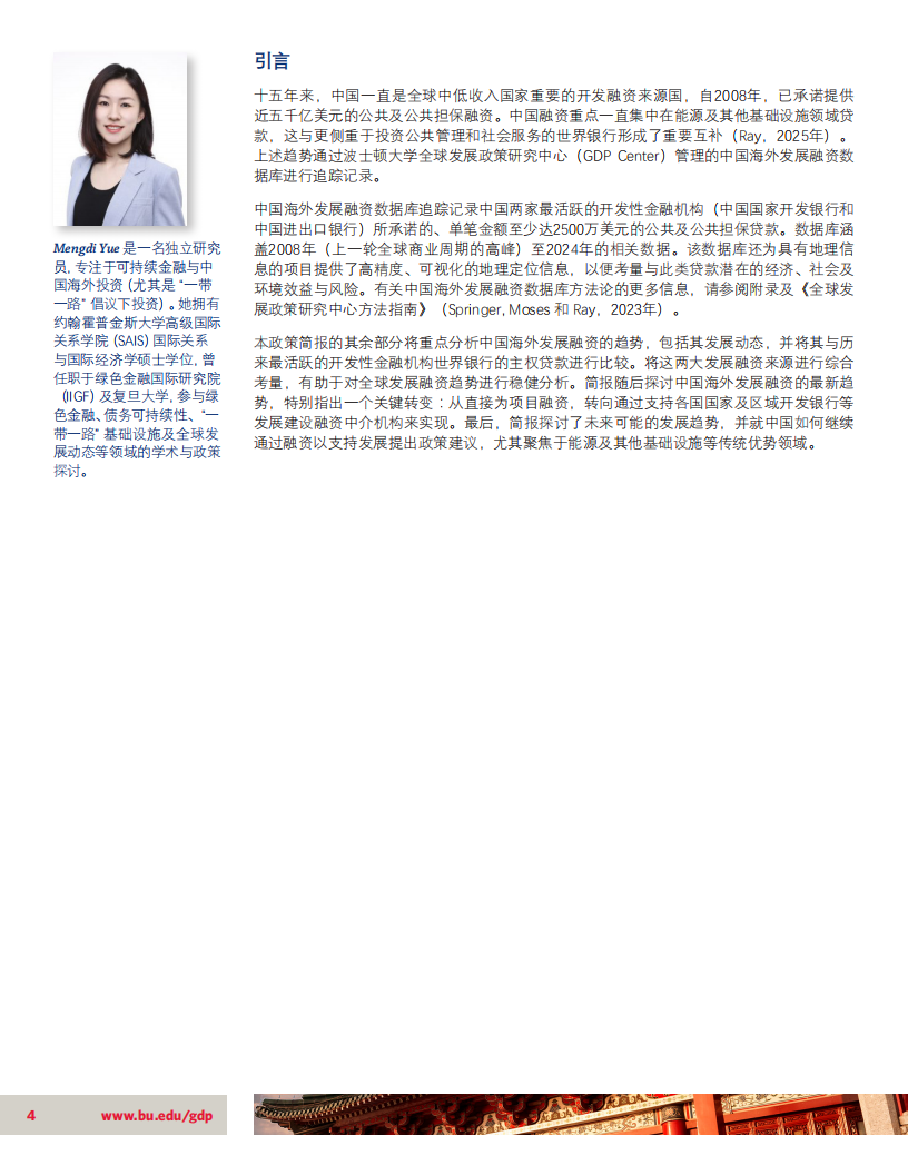 •未来展望:未来几年,中国的海外发展融资不太可能恢复到2015-2017年高峰时期的水平。过去十年间,中国对外直接投资的绝对规模和相对于发展融资比例均大幅增长。这一转变可能反映了“一带一路”倡议已步入成熟期,中资企业在海外积累了经验,具备了独自承担项目管理职责的能力。