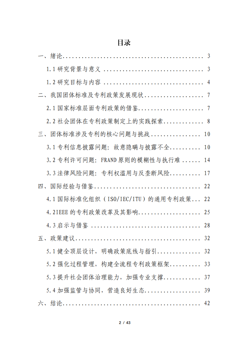 展现状、核心问题及国际经验借鉴,从健全顶层设计、强化过程管理、提升社会团体治理能力、加强监管与协同四个方面,提出针对性的政策建议,构建科学合理、系统完善的团体标准涉及专利的政策体系,为规范团体标准专利行为提供全面指导。