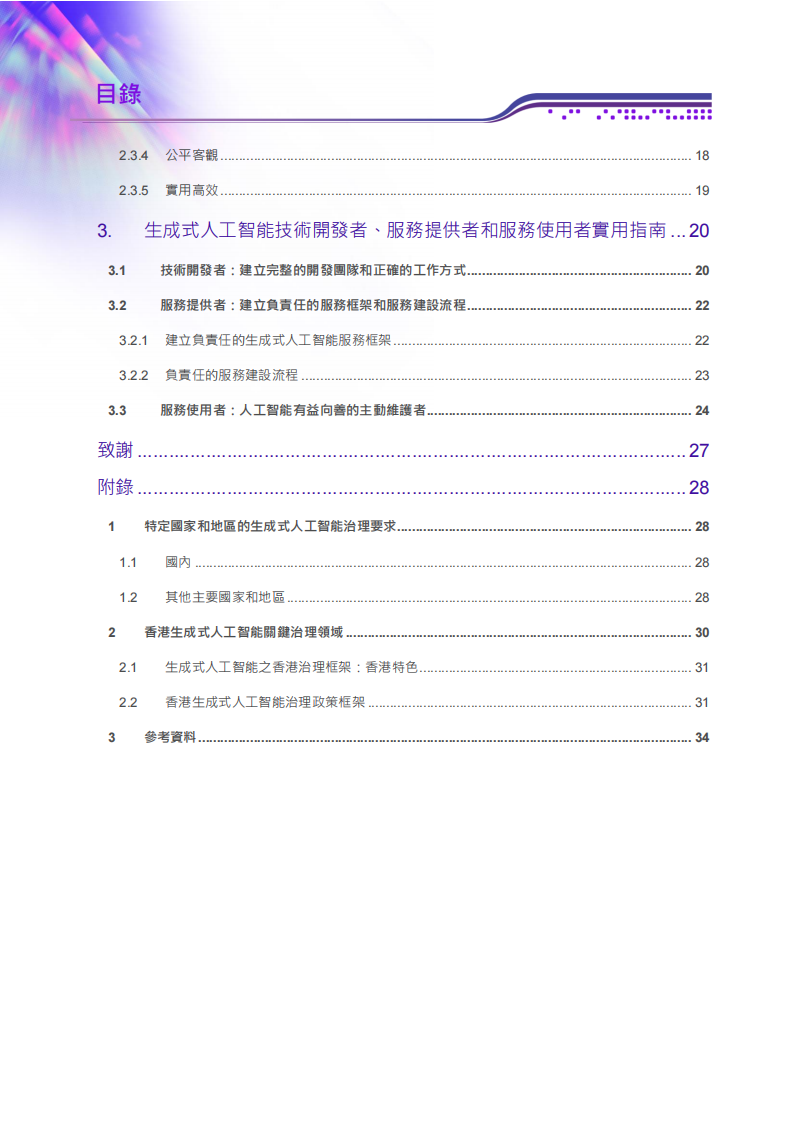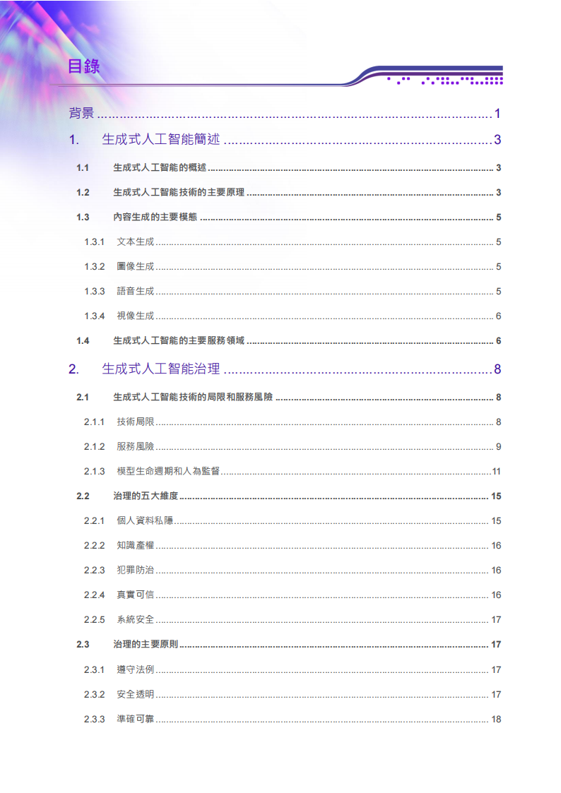 本指引闡述生成式人工智能的技術背景和治理原則,以及為技術開發者、服務提供者和服務使用者提供實用指南。