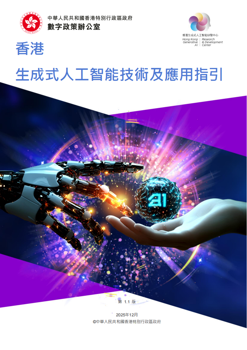 香港特别行政區政府(特區政府)數字政策辦公室(數字辦)委託了透過「InnoHK創新香港研發平台」撥款支持成立的香港生成式人工智能研發中心協助研究制定《香港生成式人工智能技術及應用指引》,以期就生成式人工智能技術及應用方面提供相關的守則及指引,供各界参考。