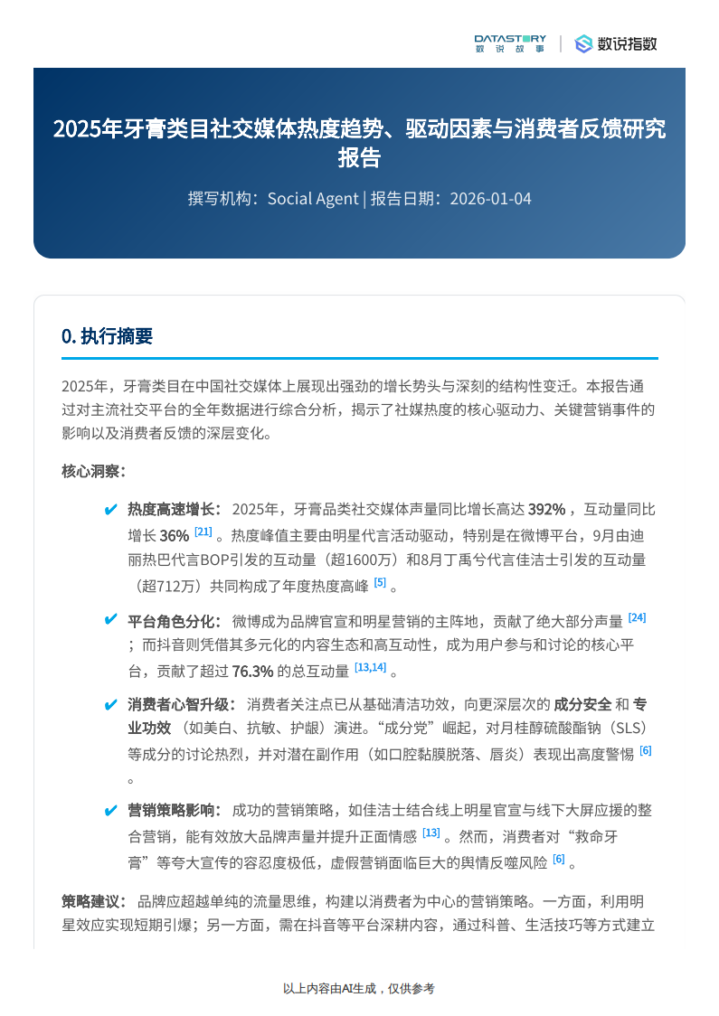 1.2研究范围精细化和个性化需求的转型。[10,20]社交媒体作为品牌与消费者沟通的核心渠道,其热度趋势点。支持。和舆论风向直接反映了市场动态与消费心智。本报告旨在通过对2025年牙膏类目在主流社交媒体的数据进行深度挖掘,实现以下目标:
