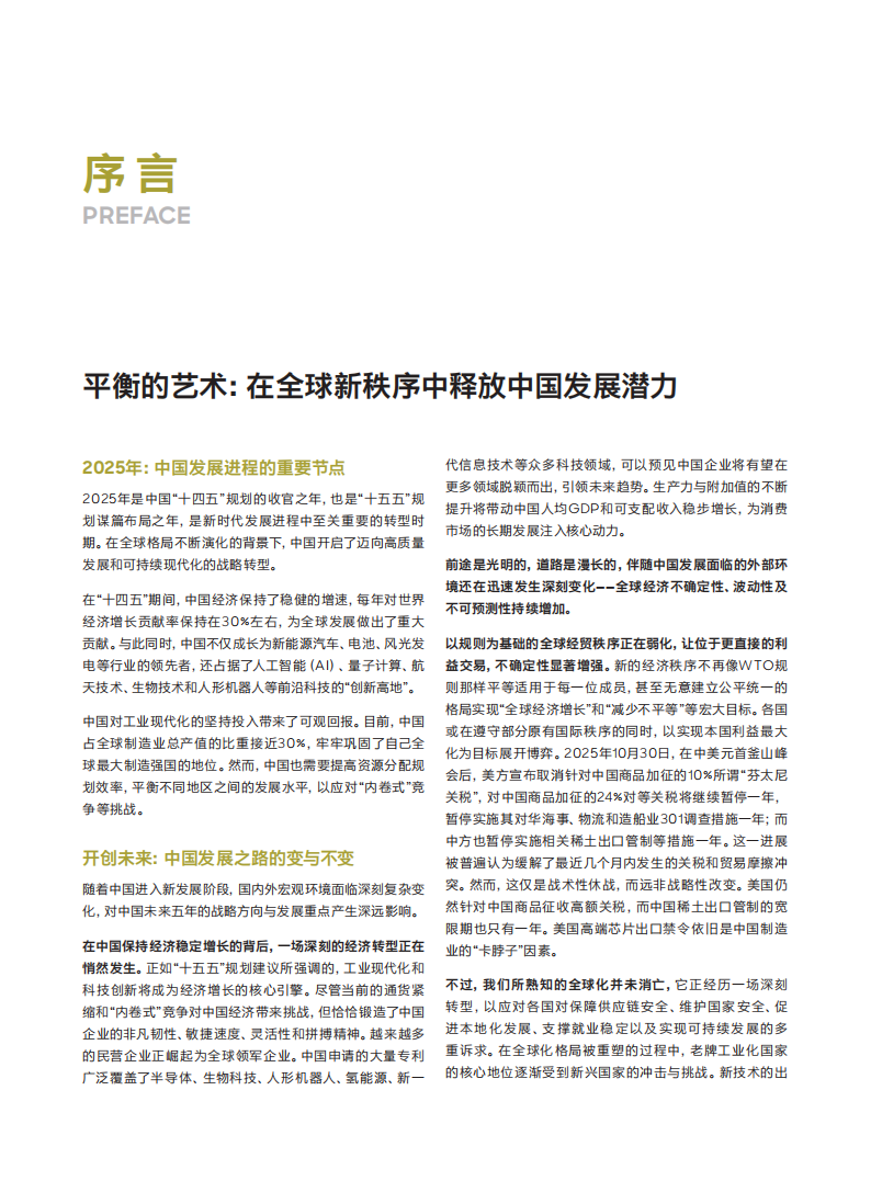 2025年是中国“十四五”规划的收官之年,也是“十五五”规划谋篇布局之年,是新时代发展进程中至关重要的转型时期。在全球格局不断演化的背景下,中国开启了迈向高质量发展和可持续现代化的战略转型。