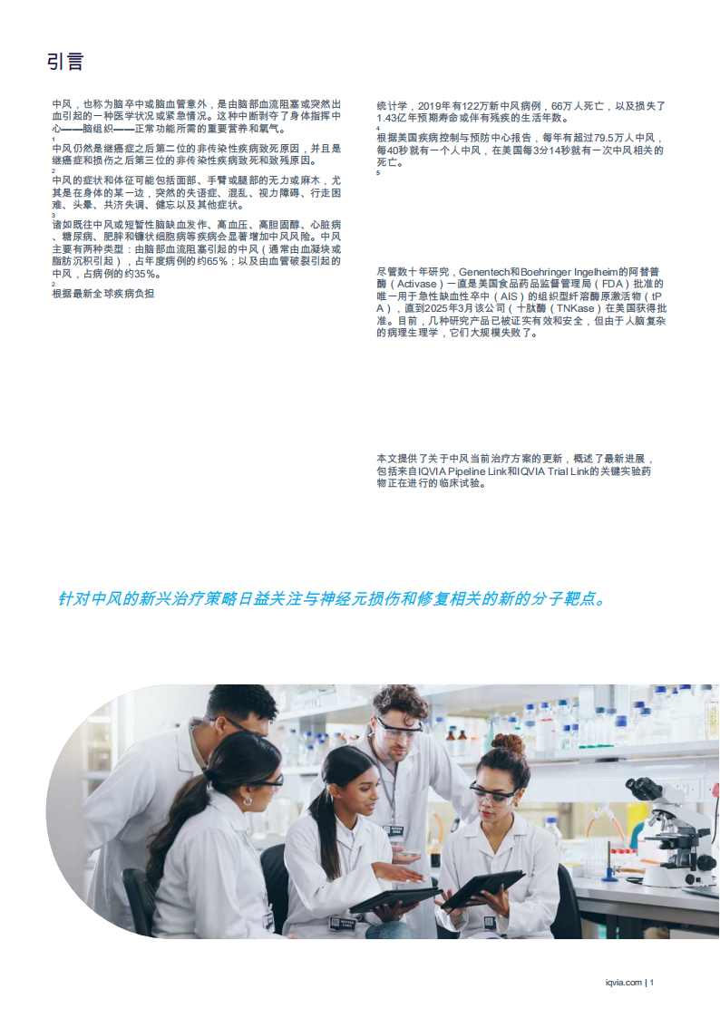 本文提供了关于中风当前治疗方案的更新,概述了最新进展,包括来自IQVIA Pipeline Link和IQVIA Trial Link的关键实验药物正在进行的临床试验。