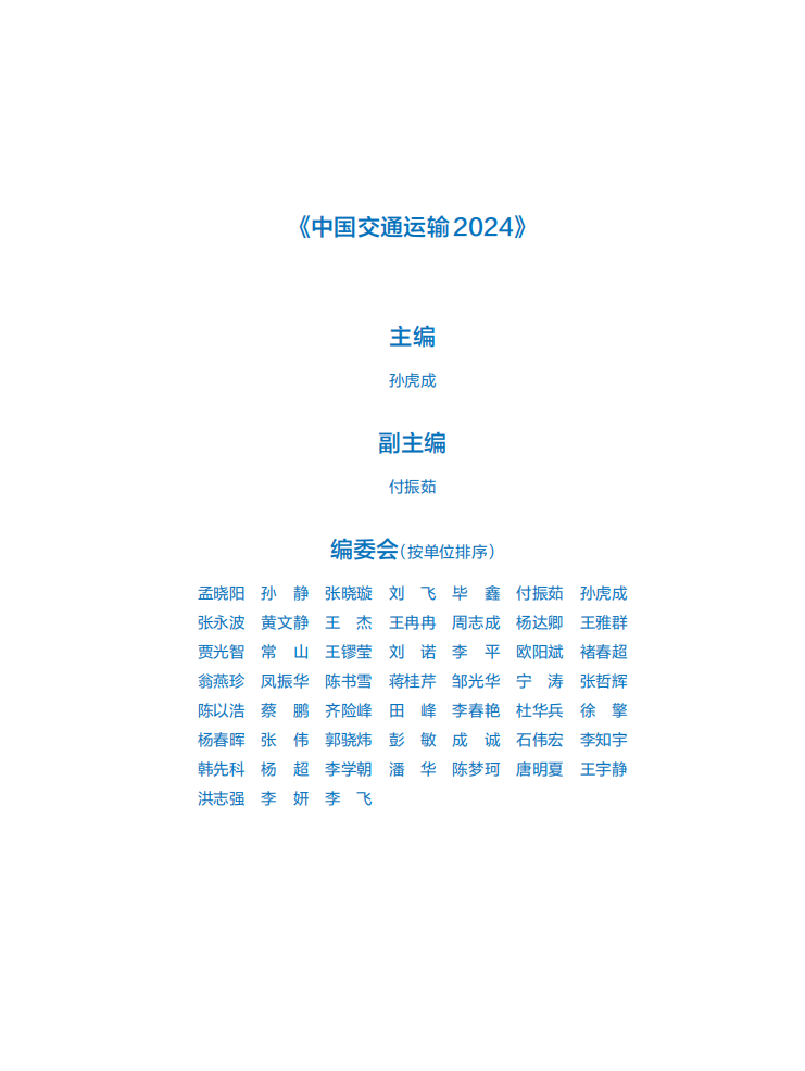 《中国交通运输2024》由上篇、中篇、下篇三部分组成。上篇沿袭了往年交通运输年度报告的内容架构,按照“继承、丰富、提高、创新”的思路,系统总结了2024年中国交通基础设施、出行服务、货运物流、投资融资、交通市场、安全应急、绿色低碳、智慧交通、开放合作等领域的发展成绩,全方位展示了中国交通运输的发展水平、对经济社会发展所做的贡献。