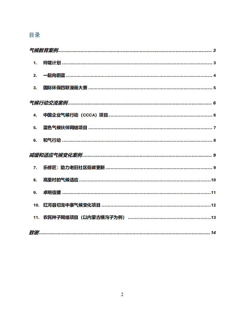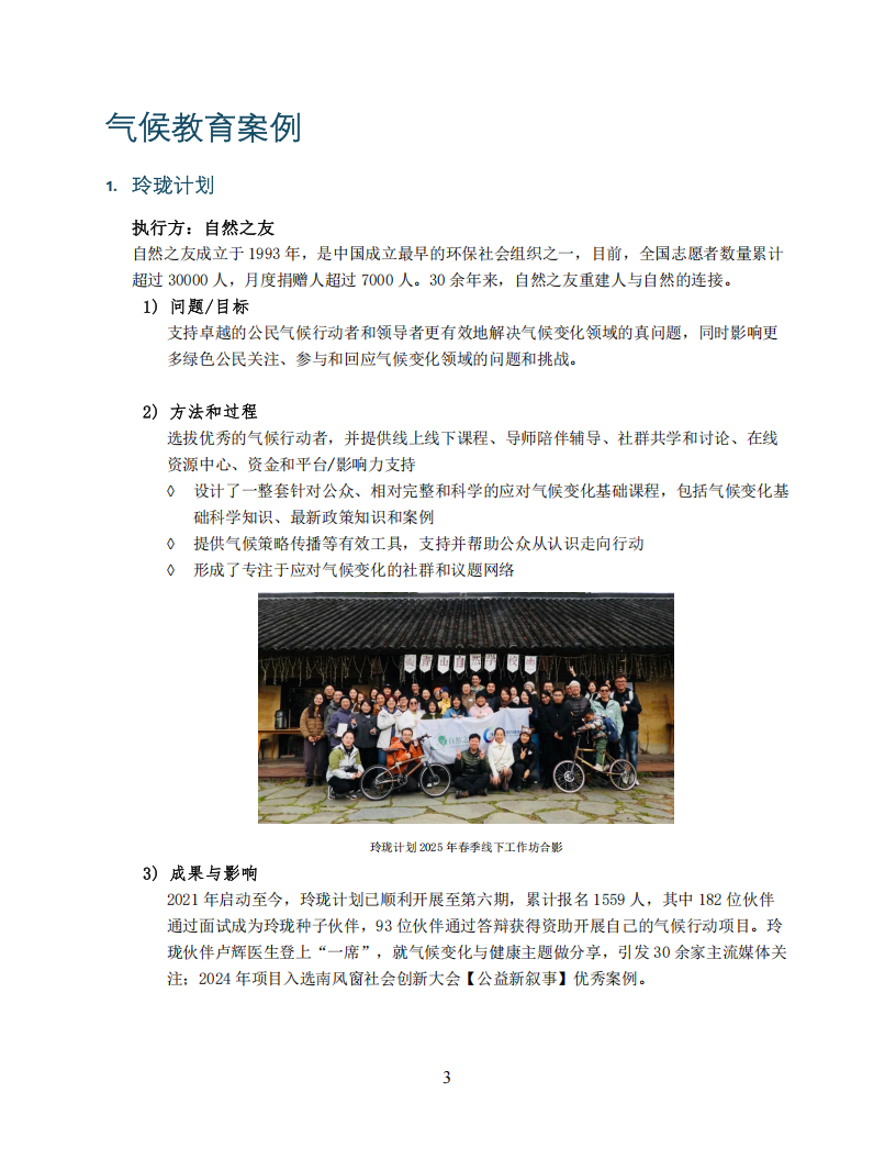 根据案例的定位和进展,报告将案例分成三类:面向公众的气候教育、面向行业的气候行动交流、面向社区的减缓和适应气候变化。