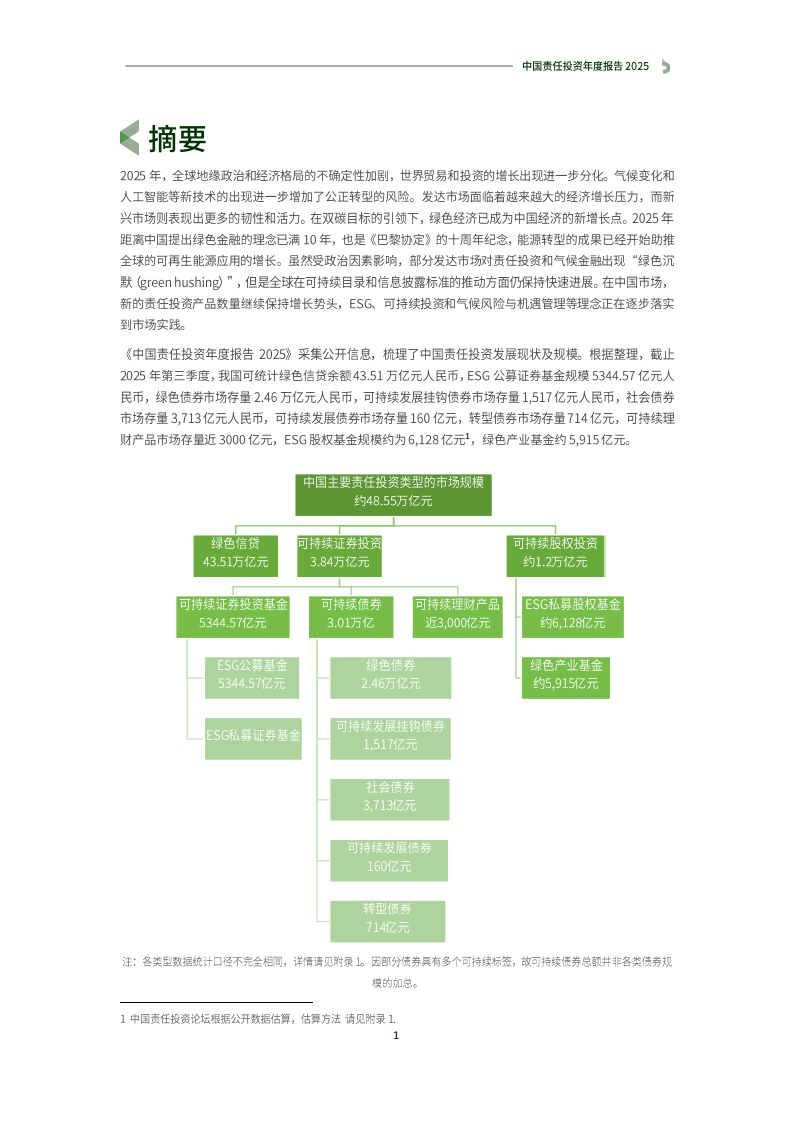 2025年,全球地缘政治和经济格局的不确定性加剧,世界贸易和投资的增长出现进一步分化。气候变化和人工智能等新技术的出现进一步增加了公正转型的风险。发达市场面临着越来越大的经济增长压力,而新兴市场则表现出更多的韧性和活力。在双碳目标的引领下,绿色经济已成为中国经济的新增长点。2025年距离中国提出绿色金融的理念已满10年,也是《巴黎协定》的十周年纪念,能源转型的成果已经开始助推全球的可再生能源应用的增长。虽然受政治因素影响,部分发达市场对责任投资和气候金融出现“绿色沉默(green hushing)”,但是全球在可持续目录和信息披露标准的推动方面仍保持快速进展。在中国市场,新的责任投资产品数量继续保持增长势头,ESG、可持续投资和气候风险与机遇管理等理念正在逐步落实到市场实践。