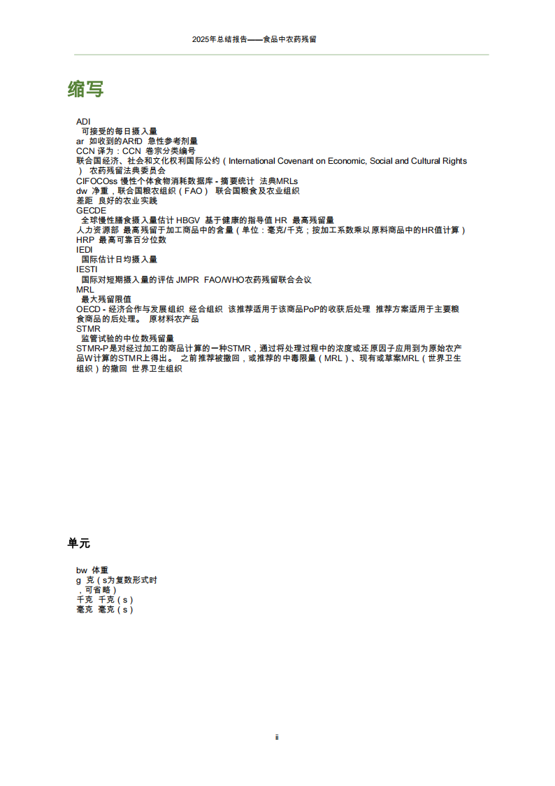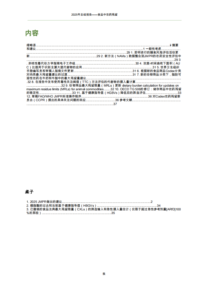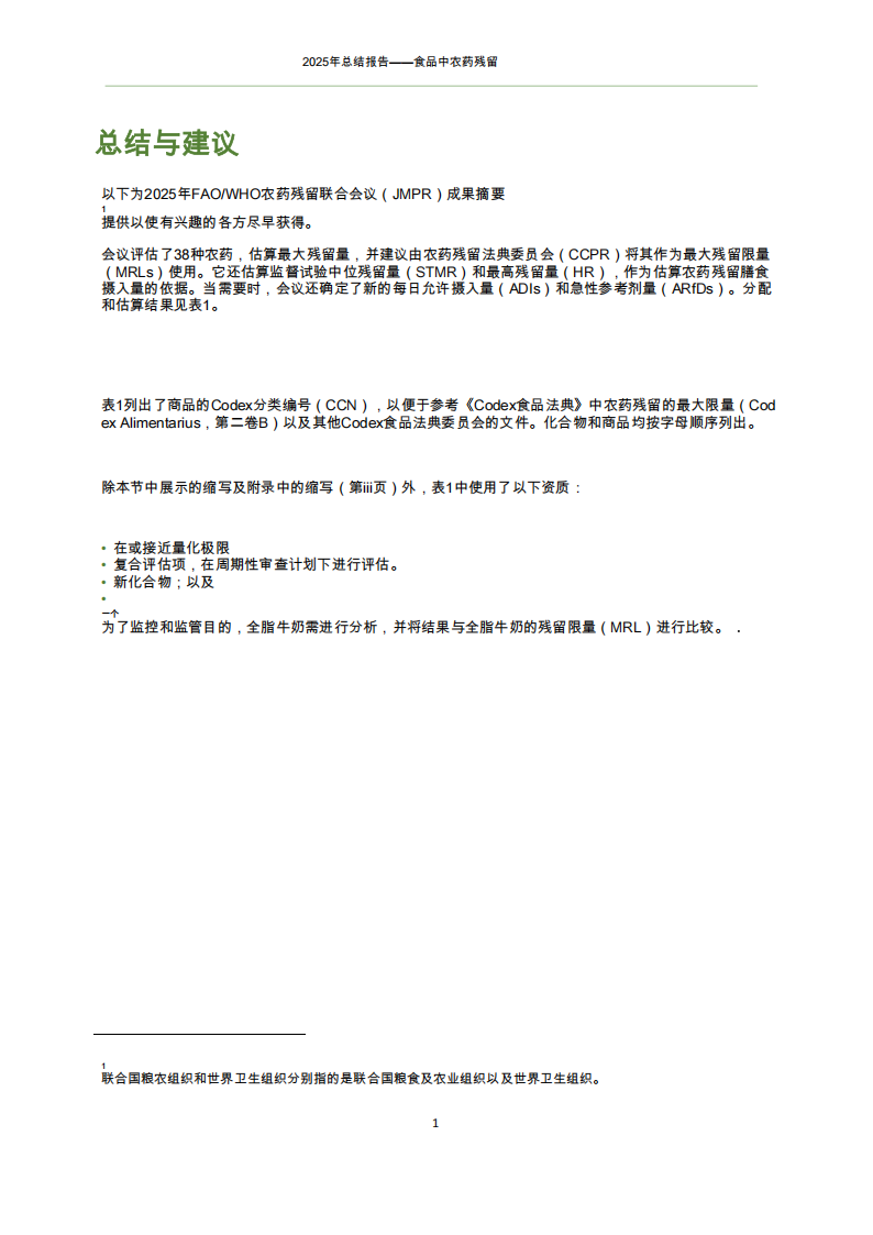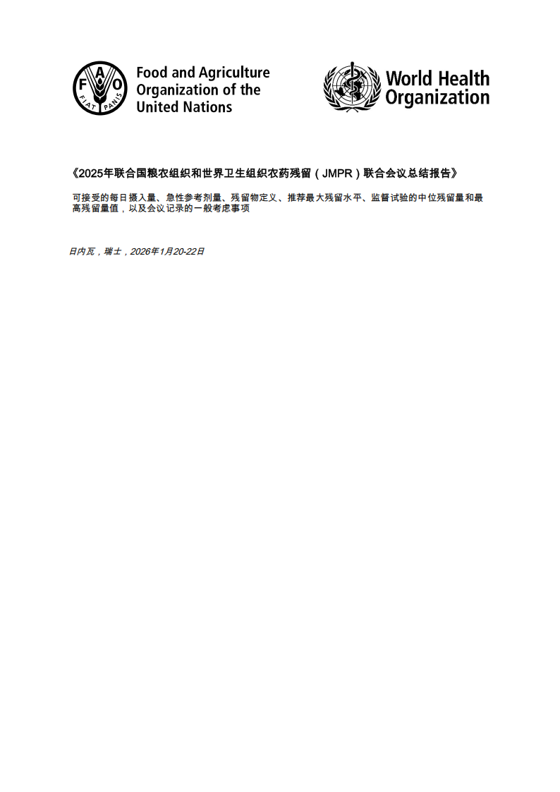 以下为2025年FAO/WHO农药残留联合会议(JMPR)成果摘要提供以使有兴趣的各方尽早获得。