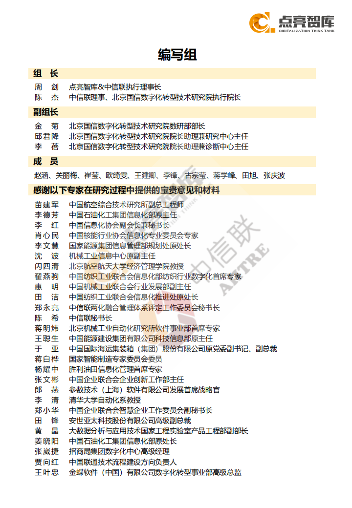 希望通过本报告能够为政府、行业组织、企业、服务商等各方提供有价值的参考,助力中国企业在数字化转型浪潮中稳健前行。因时间和水平有限,若有疏漏或不当之处,敬请专家和读者海涵。