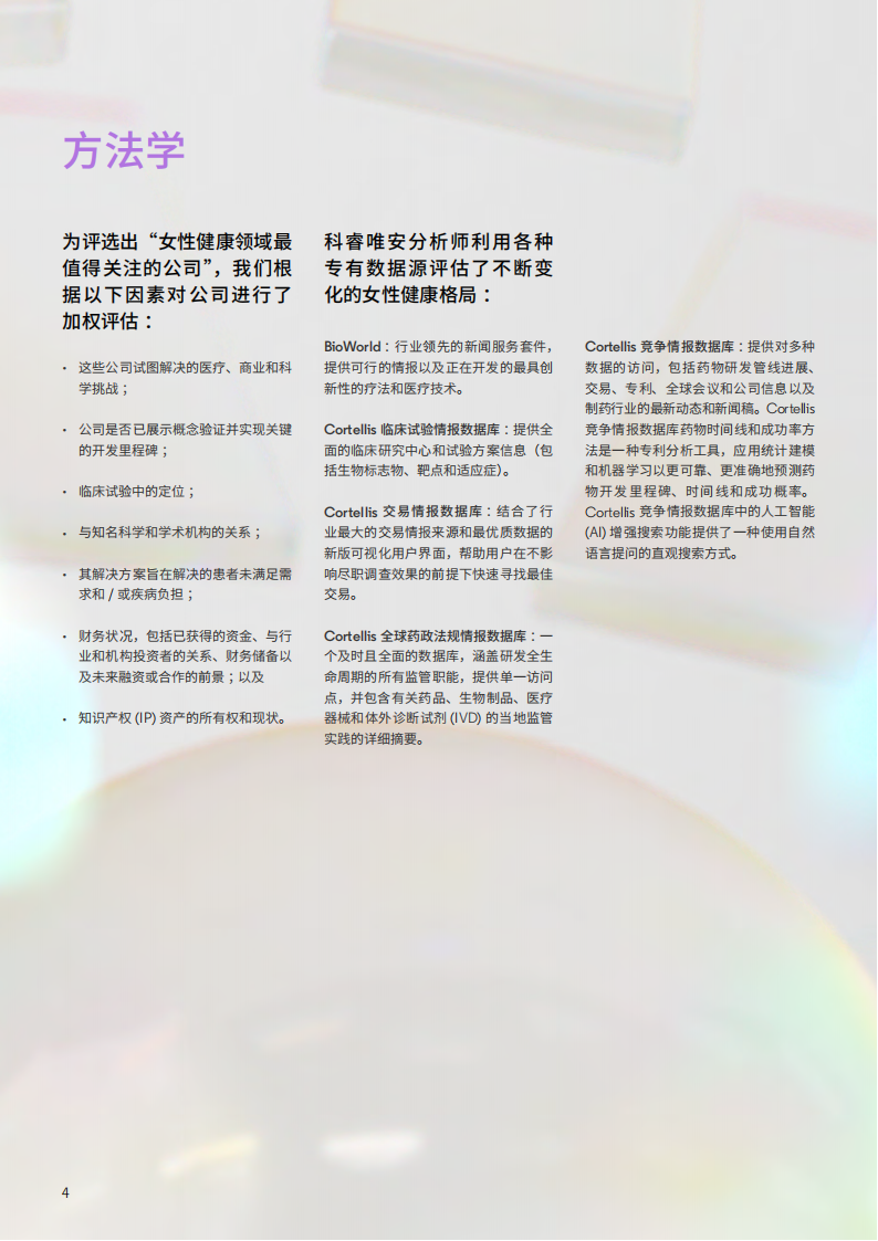 科睿唯安分析师利用各种专有数据源评估了不断变化的女性健康格局: