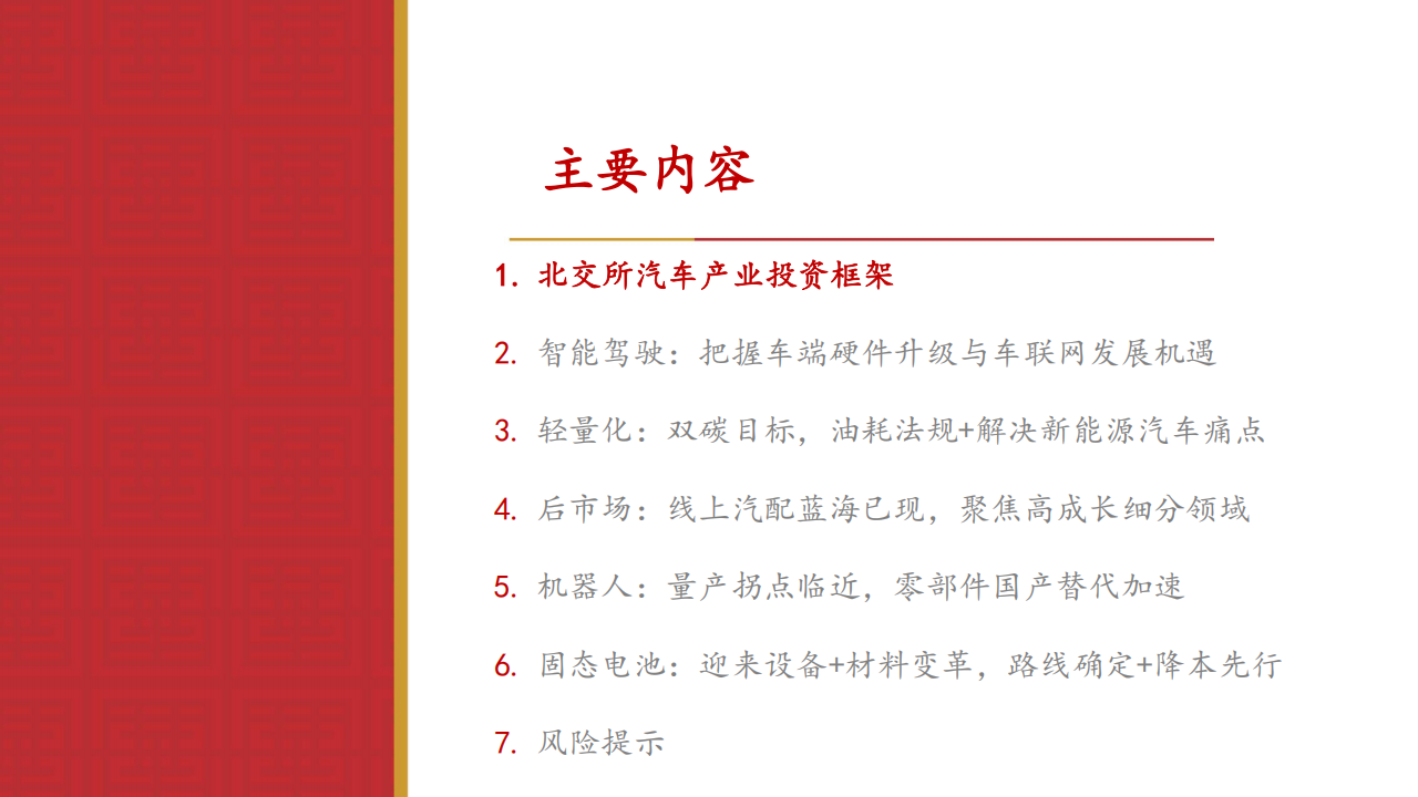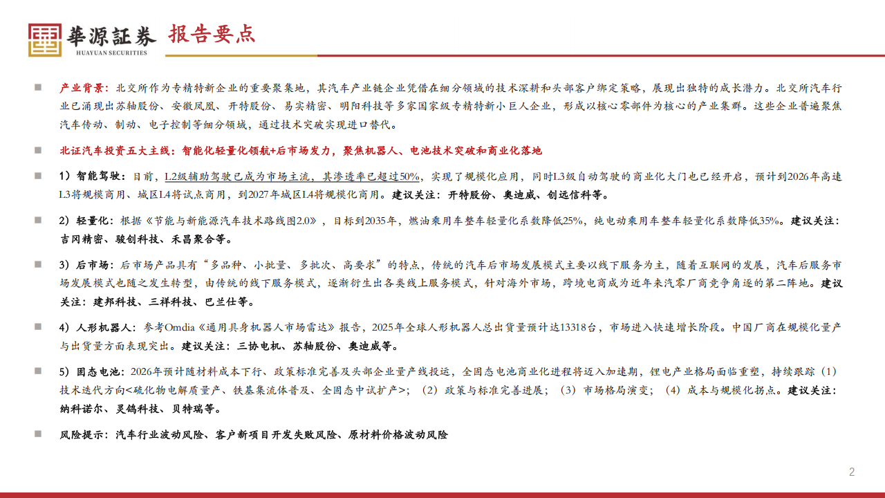 北证汽车投资五大主线:智能化轻量化领航+后市场发力,聚焦机器人、电池技术突破和商业化落地