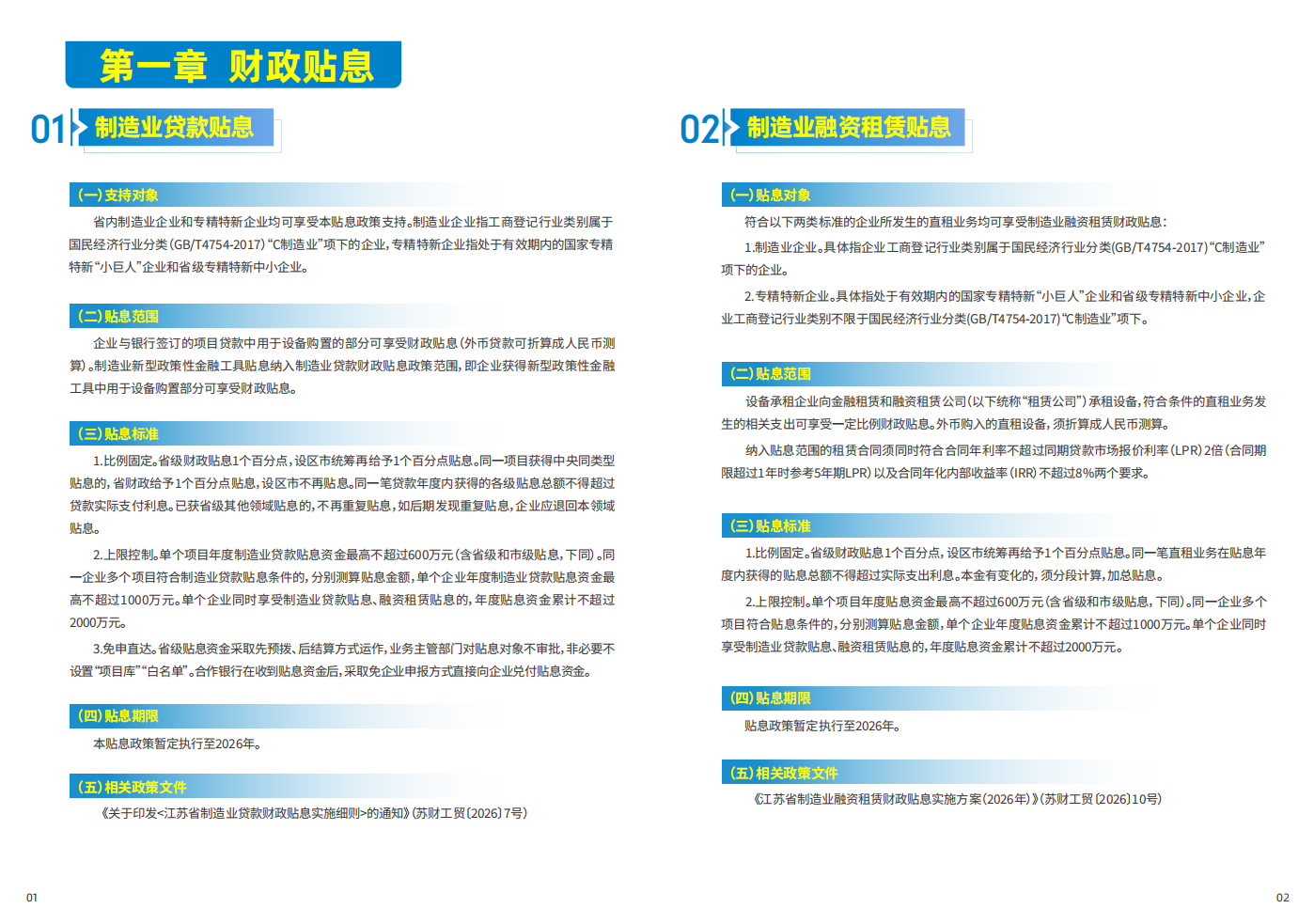 江苏省制造业融资租赁财政贴息实施方案口026年)》(苏财工黄D02610号)