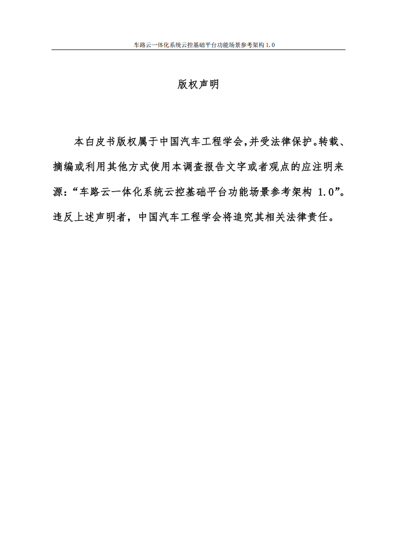 本白皮书由清华大学、国家智能网联汽车创新中心、中国汽车工程学会联合行业相关单位共同起草,寄望此白皮书能为政产学研各界提供有力的技术参照,助力我国智能网联汽车基础设施建设,从而全面推进逻辑协同、架构统一的智能网联汽车车路云一体化系统建设,促进我国智能网联汽车产业未来的规模化建设与应用推广。