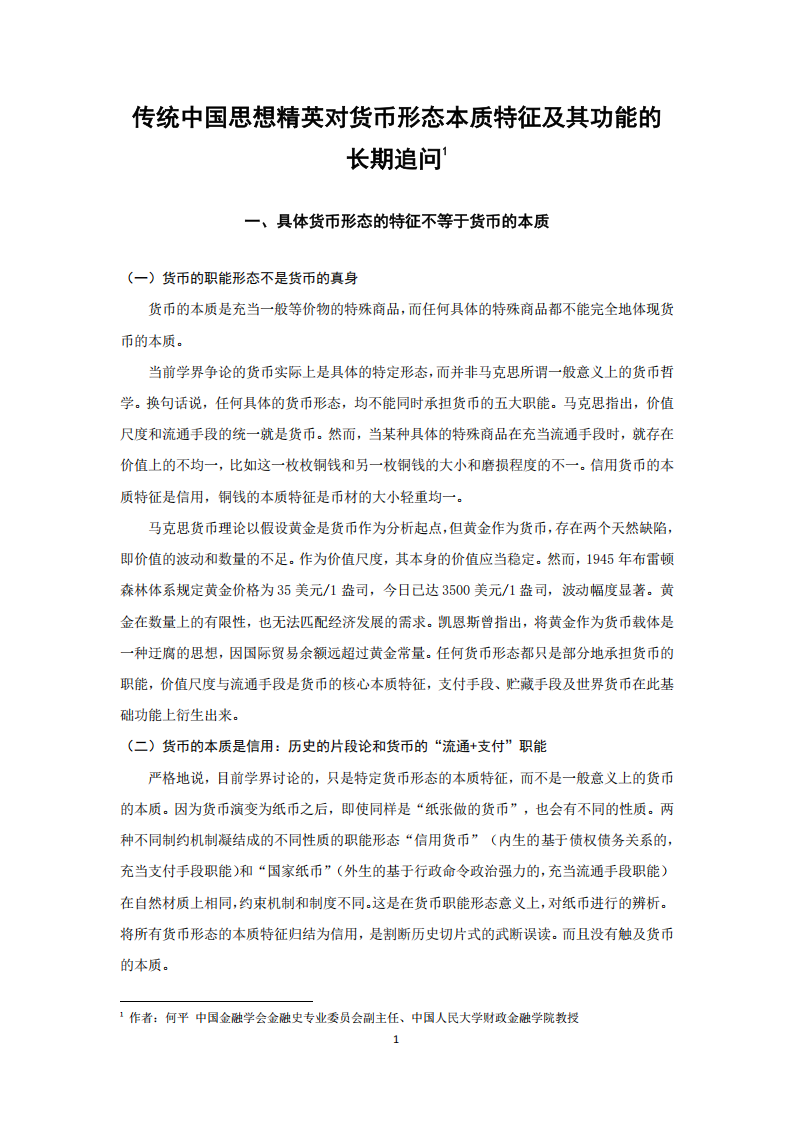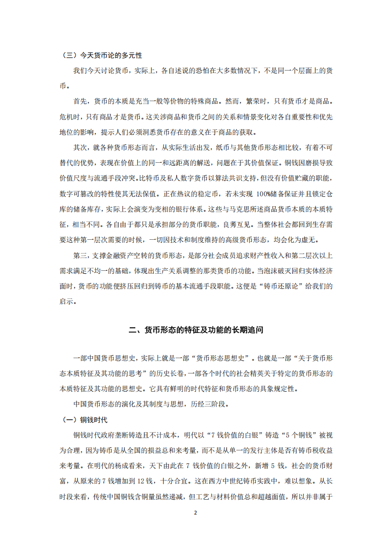 二、货币形态的特征及功能的长期追问