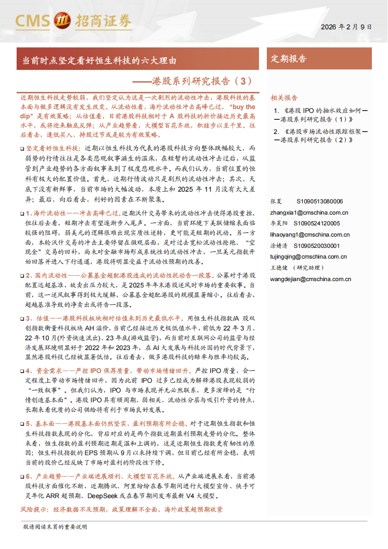 一、坚定看好恒生科技