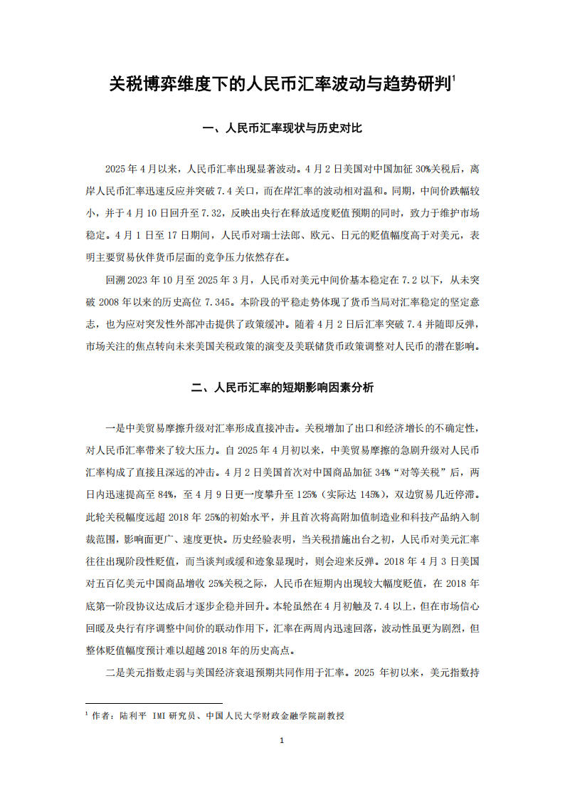 关税博弈维度下的人民币汇率波动与趋势研判