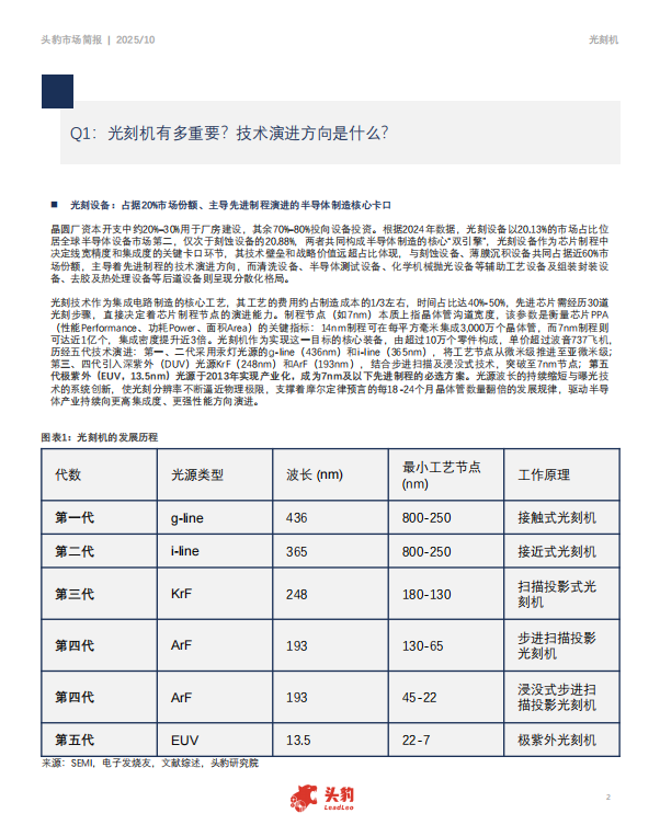 ■光刻设备:占据20%市场份额、主导先进制程演进的半导体制造核心卡口