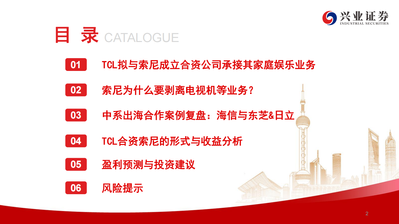 ①成立合资公司(TCL持股51%/索尼49%)承接索尼家庭娱乐业务,并在全球开展电视机和家庭音响等产品的一体化运营;