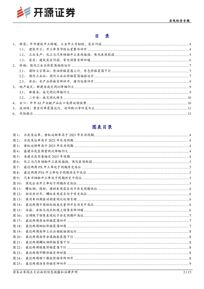 1、供需:开年建筑开工转暖,工业开工有韧性,需求仍弱