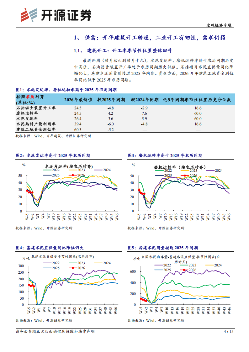 ●供需:建筑开工转暖,工业开工有韧性,需求仍弱