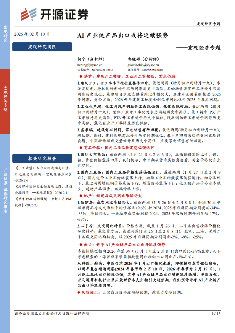 ●出口:开年AI产业链产品出口或将延续强势