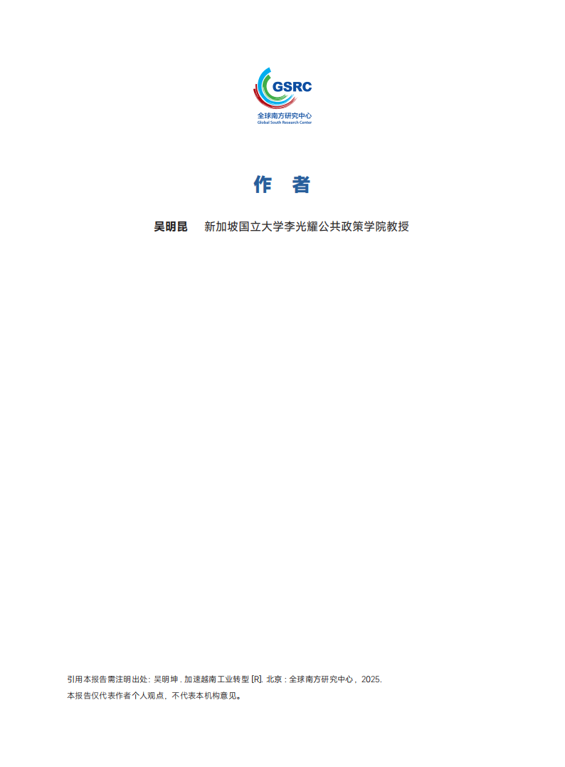 产业开展案例分析;第四部分提出可实施的政策建议,助力越南建设成为高附加值、创新驱动和有韧性的经济体。