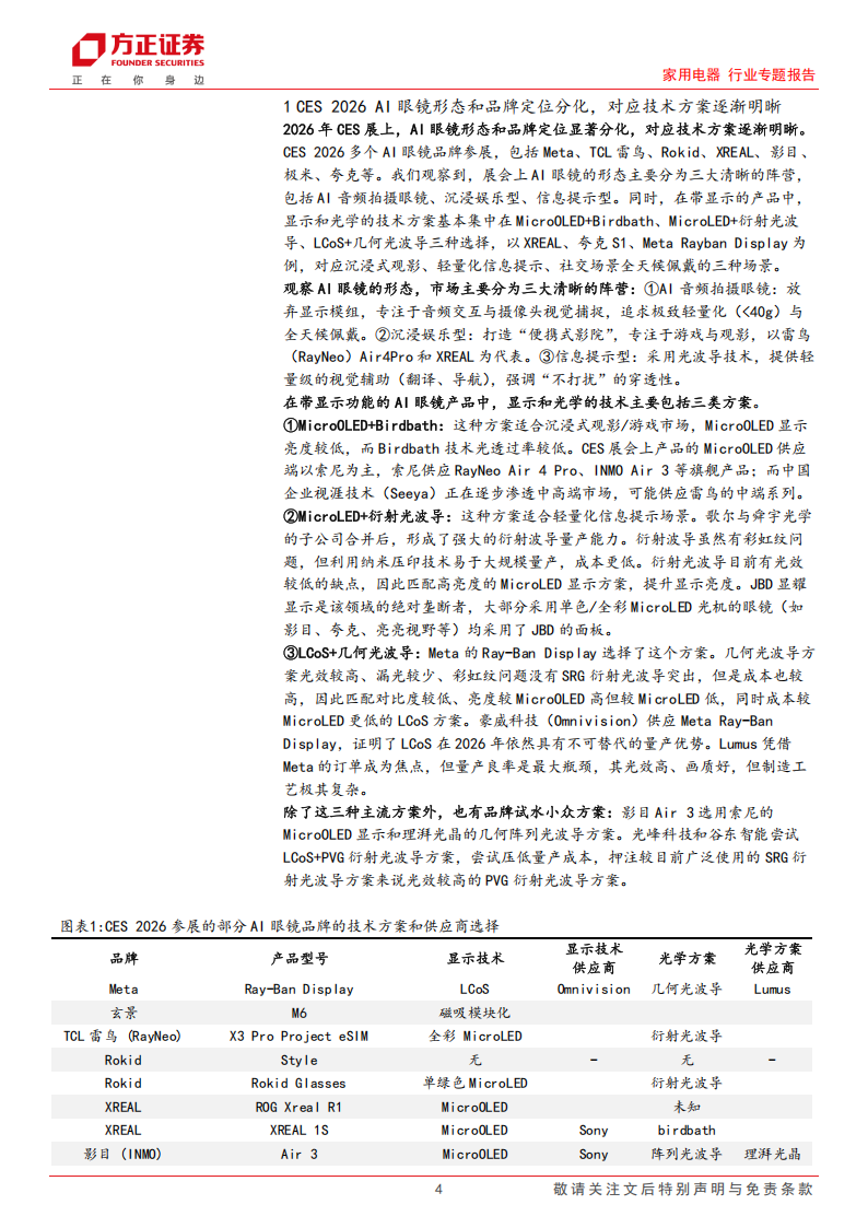 家用电器行业专题报告:掘金AI眼镜系列(三),从CES2026看AI眼镜的技术线收束.pdf