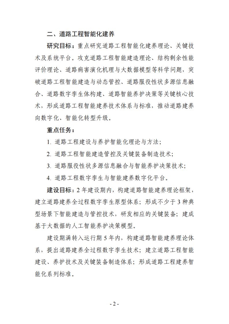 2.道路工程智能建造管控及关键装备制造技术;