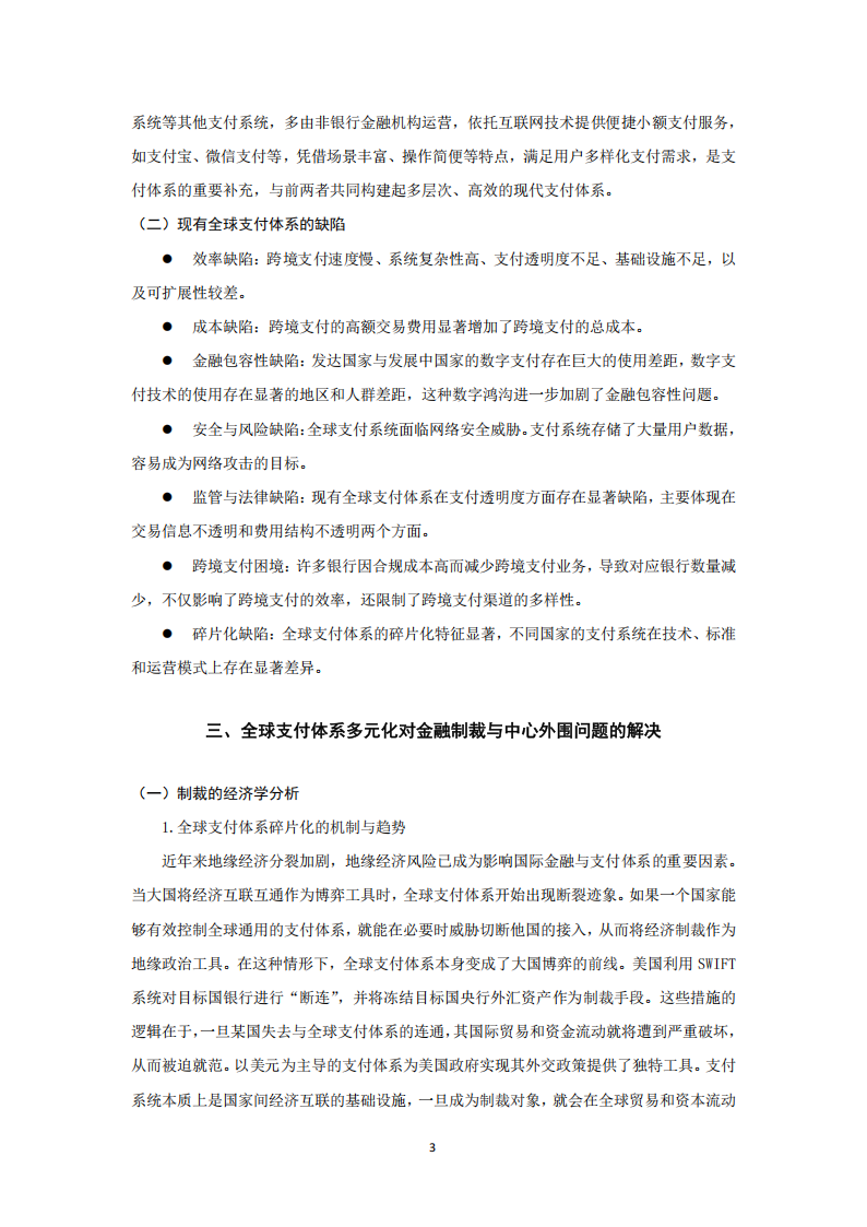 三、全球支付体系多元化对金融制裁与中心外围问题的解决